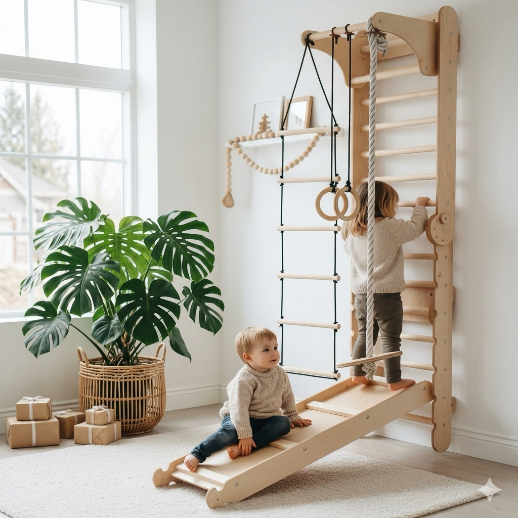 Invigorate your child’s world with the Swedish Wall + Slide & 3-in-1 Gym Set, a perfect blend of fun and developmental benefits. Secure yours today and watch the adventures unfold!